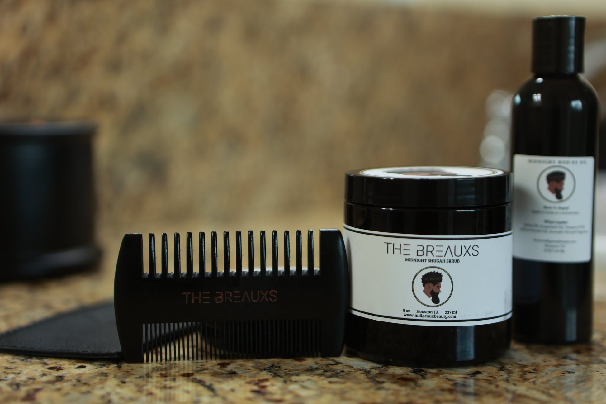 The Breauxs Box is a customizable box for the distinguished gentleman. You have the option to choose Bod-ee Buht-er, Bod-ee Lotion, Bod-ee Oil, Beard Buht-er, and Beard Oil. If any beard items are ordered it automatically comes with the beard comb and derma roller.